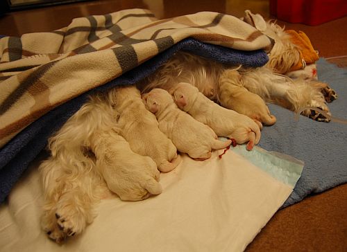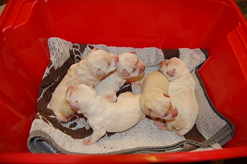 ![]() Ensimmäistä kertaa aterioimassa. Ei meinaan näillekään lapsille heti maistunut maito, vaikka sitä jo eläinlääkärissä heille tarjottiin. Kävivät vain äidin massun viereen nukkumaan. Laylan edellisetkin lapset toimivat samalla tavalla.. Yllä olevasta kuvasta näkee hyvin pentujen turkkien väreistä ketkä joutuivat uiskentelemaan jo hiukan likaisessa sikiövedessä... (v.sin ja kelt) |