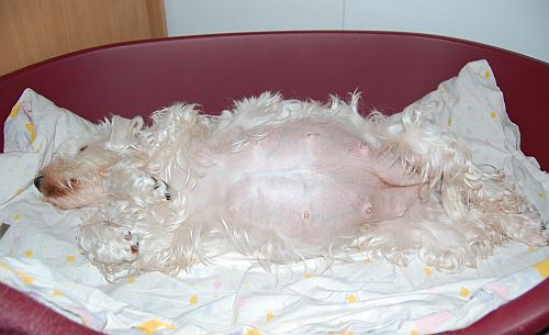 ultrassa vuorokaudella 27 varmistamassa pentujen olemassaolon.